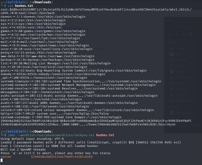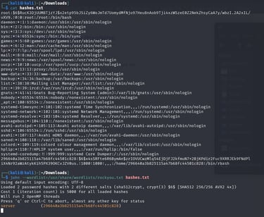 En consultant les fichiers on trouve des ultilisateurs dans passwd et des hashes de mdp dans shadow. Avec la commande unshadow, on peut tenter une association de ces deux fichiers pour savoir si l'un des utilisateurs utilise l'un des mdp de passwd.